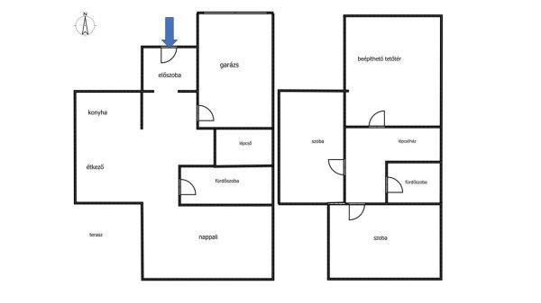 padlófűtéses, jó elosztású, garázsos családi ház 20 m2-es el. kapus garázzsal,