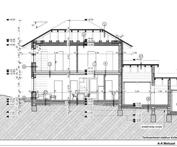 garázs, tároló és padlás tartozik. Az alsó szinten amerikai konyhás nappali,