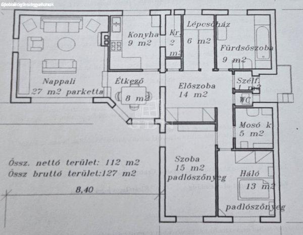 elrendezésű.Földszint: 127 m2 ? Nappali? Konyha ? étkező? Közlekedő? Hálószoba 2