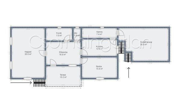 bejáratTerasz- 28 m2- járólapozott, fedett- udvarra nézőPince- kb. 30 m2 (kamra,