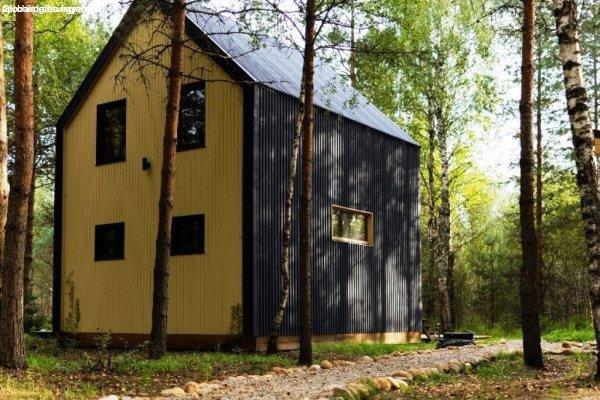 könnyűszerkezetes 70 m2-es családi házat. A telek adottságaiból adódóan mérete
