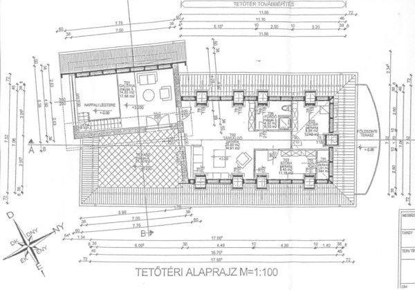 helyiség teraszkapcsolattal rendelkezik.Tetőtér (63,7 m˛ + 22 m˛ erkély):A