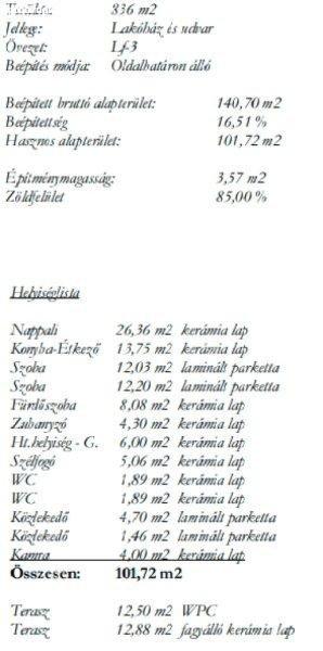 tipusok kerülnek beépítésre,- terasz burkolva,- 1 autónak térkövezett beálló,-