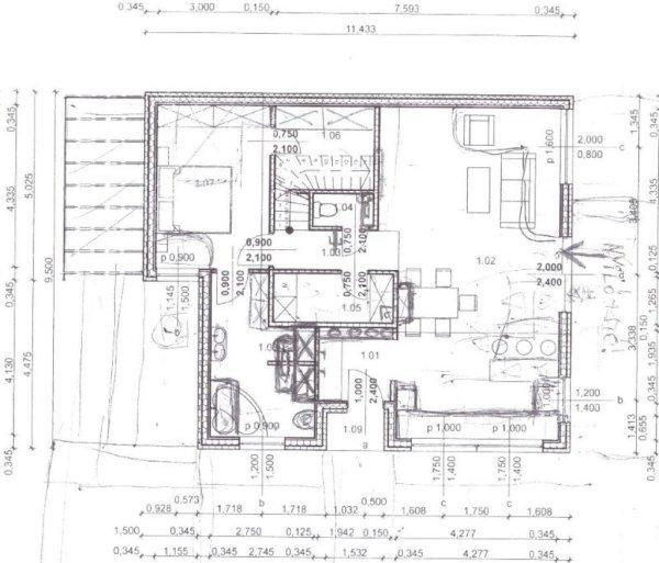 alsó szinten:- szélfogó- amerikai konyhás nappali- közlekedő- mellékhelyiség-