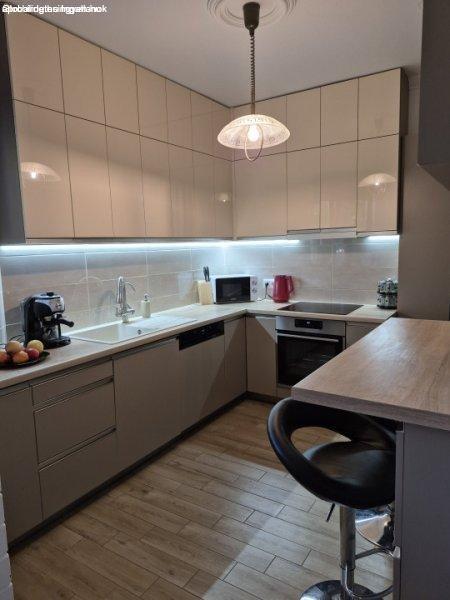 helyiség járólappal burkolt. Új beépített konyhabútor, minőségi gépekkel