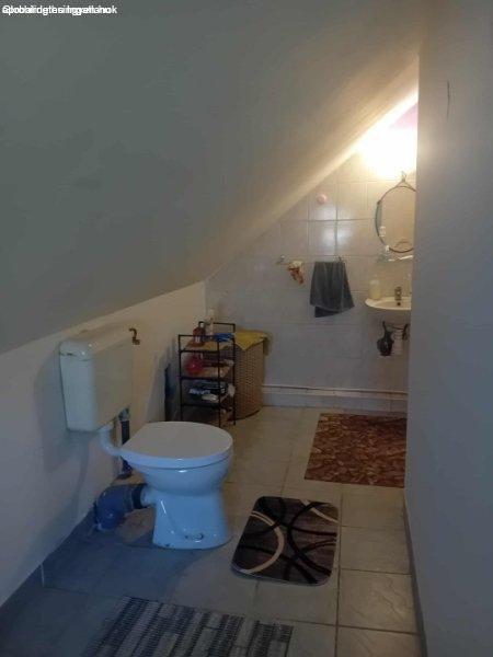 két fürdőszoba, kamra, gardrób, étkezőkonyha található. Fűtése elektromos