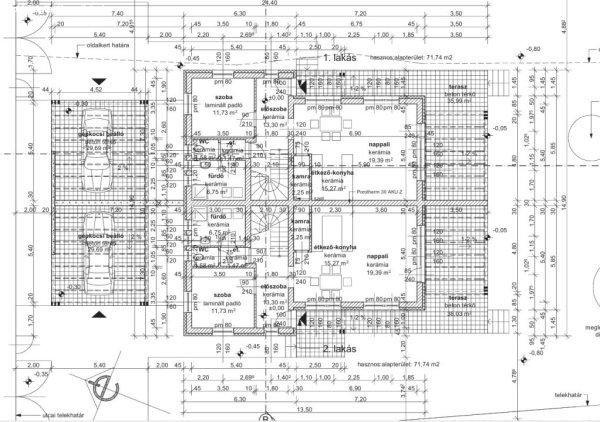 egymás melletti ikerház, kizárólagos használatú 750 nm-es telekrésszel.A