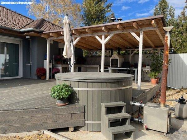 kialakításra.Beépített fűtött dézsafürdő homokszűrővel, belső műanyag borítással