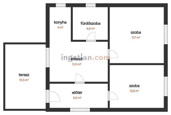 m2-konyha 4 m2-szoba 17,7 m2-szoba 13,5-fürdőszoba 4,7 m2A kert rendezett