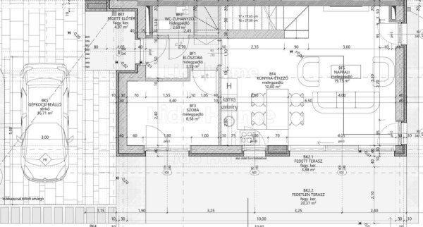 m2 -Gépkocsibeálló: 17 m2 -hőszivattyús rendszer - padlófűtés + fancoil