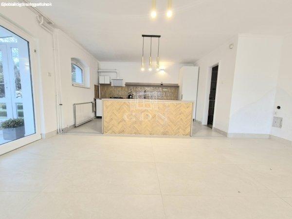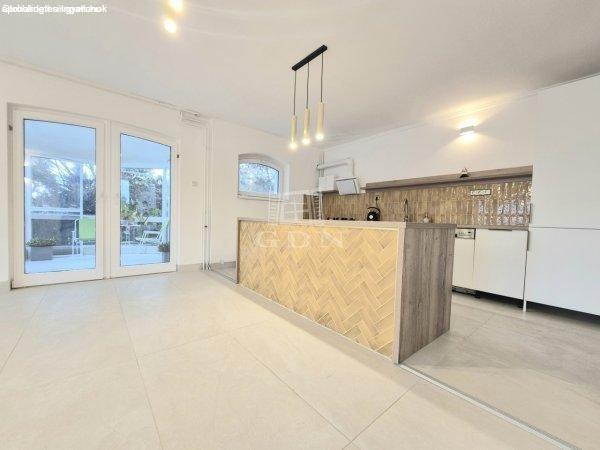 földszint egy 50 m2-es, erkélykapcsolatos, pazar élményt nyújtó amerikai-konyhás