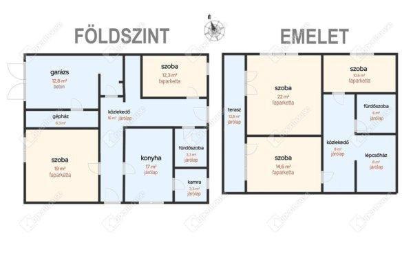 - a ház alapterülete 155 m2, 5 tágas külön nyíló szoba, 2 fürdőszoba alkalmas