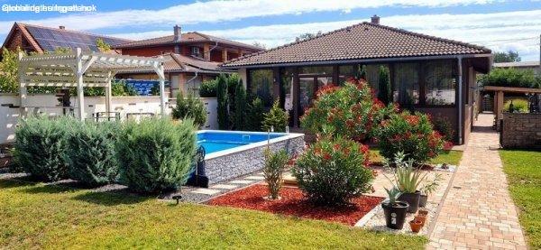 növényzet, locsolórendszeres pázsit és épített medence tesz különlegessé. A