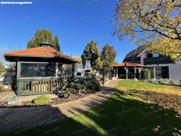 parkosított telken, 290 m2-en, 3 szinten, wellness résszel, medencével,