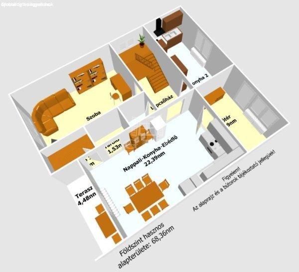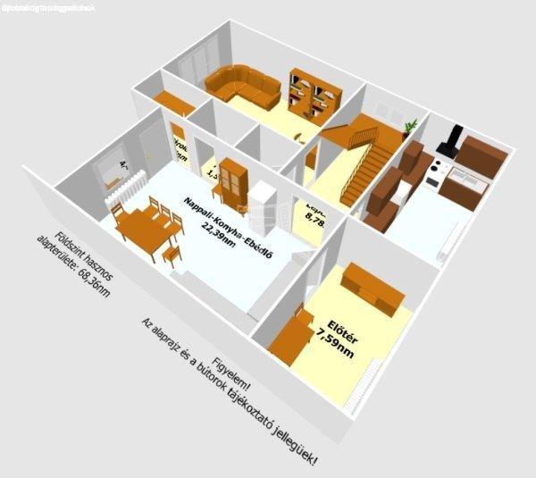 földszint hasznos alapterülete: 68,36nm,- az 1. emelet hasznos alapterülete: