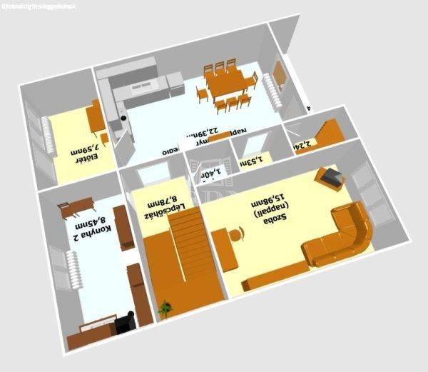 69,66nm,- a tetőtér (2. emelet) hasznos alapterülete: 22,23nm.Az épület további