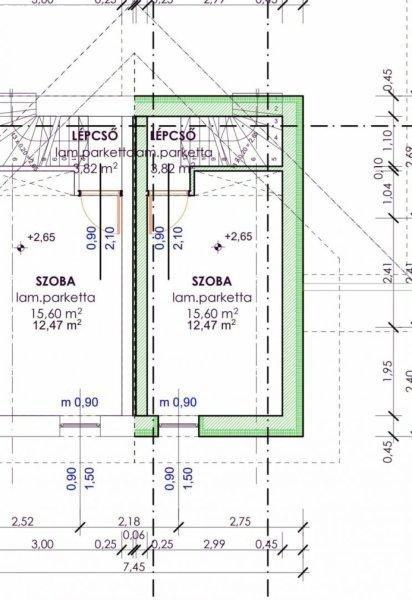 m2)- tetőtéri szoba : 15,60 m2- amerikai konyha: 32,85 m2- garázs: 19,80 m2-