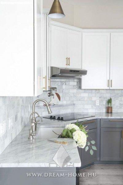 családi ház. A célszerű tervezésnek köszönhetően a nappali és a konyha közös