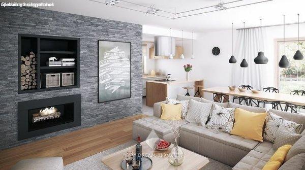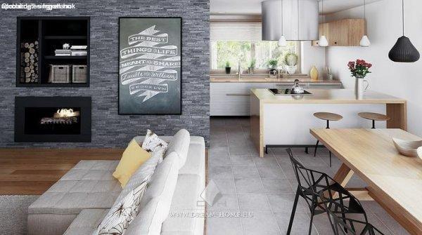 amerikai stílusú nappali-konyha-étkező kialakítású, Energiatakarékos tégla 85
