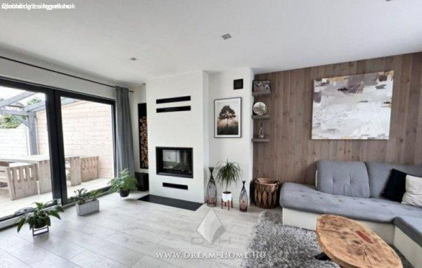 téglaépítésű 85 nm-es, háromszobás, amerikai stílusú családi házat, prémium