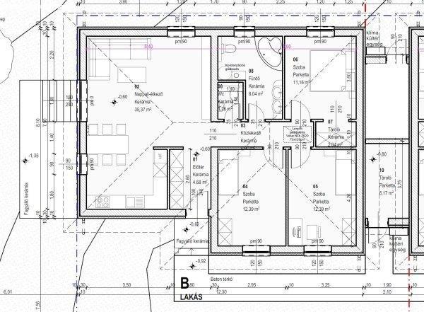 cserépfedés,- betonfödém, tetőtérben 20cm vastag kőzetgyapot,- 3 réteg