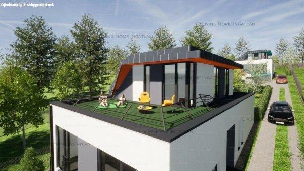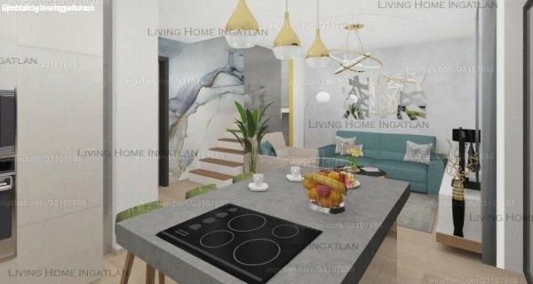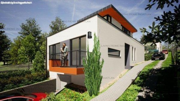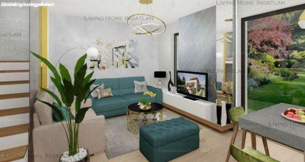 tervezett ikerházfél eladó.A FÖLDSZINTEN - impozáns - nappali-étkező-konyhát