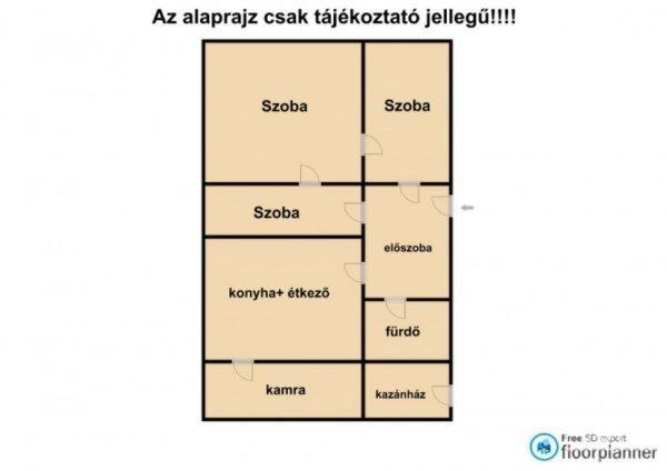 Elosztása: 3 db szoba,fürdő-wc,kamra,konyha,előszoba,kazánház,melléképületek ?