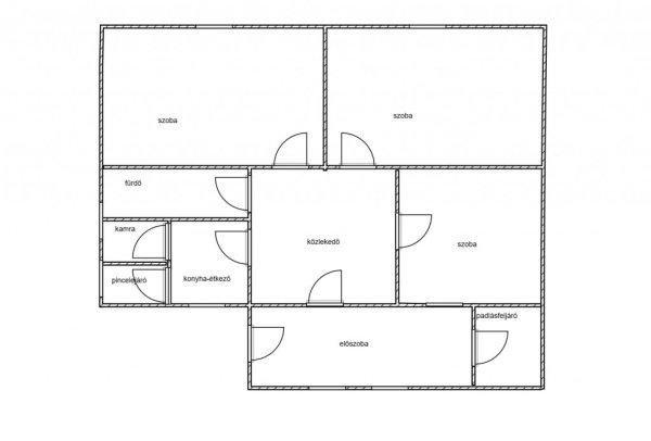 alaprajz szerint a házban 3 külön nyíló, tágas szoba, egy közlekedő (vagy