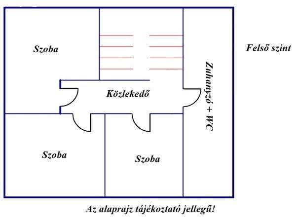 szint: 3 szoba, közlekedő, zuhanyzó + WC. Részben alápincézett az ingatlan,