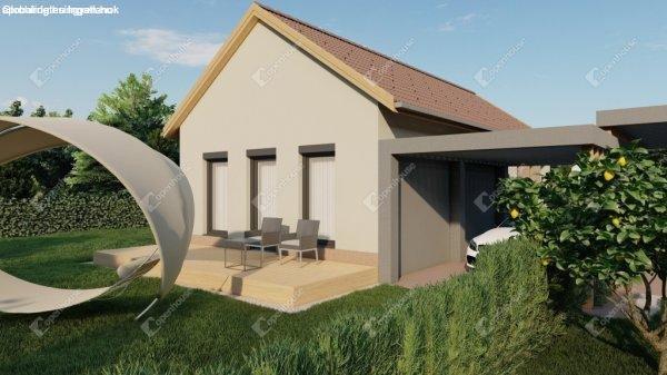 gépészeti rendszerekkel. A telken 2 különálló ház kerül megépítésre, autóbeálló