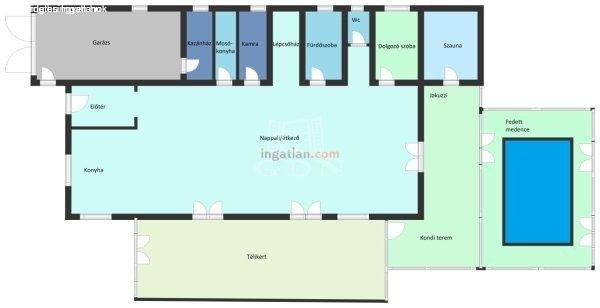 télikert pihenőtérként csocsó, darts. Külön gépészeti tér a medencéhez, profi