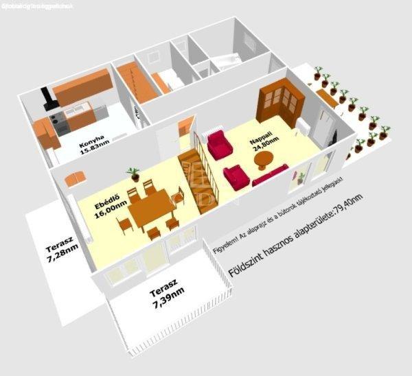 földszint hasznos alapterülete: 79,40nm,- az emelet hasznos alapterülete: