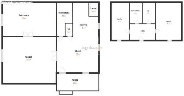lehet 1-2 fő külön lakhatására. Található benne, 1 szoba+konyha, fürdő és wc.