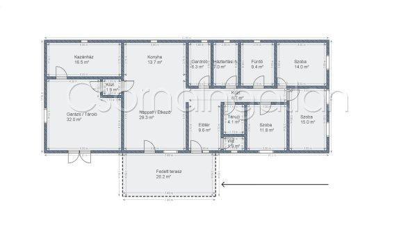 (32,34 m2) Hörmann szekcionált garázskapuval- fedett terasz (26 m2)MŰSZAKI
