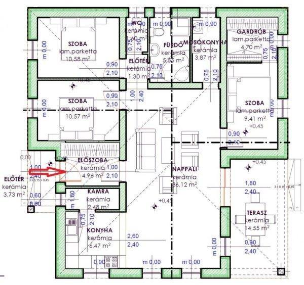 Padlófűtés- 2 klíma- 43 m2 amerikai konyhás nappali- 15 m2-es fedett terasz- 3