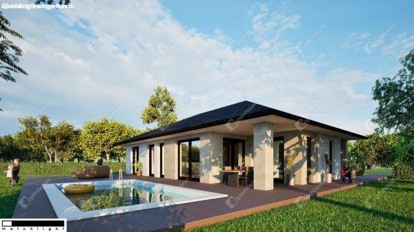 ingatlanok a látványtervel megegyezően leszknek kialakítva, a medence opcionális