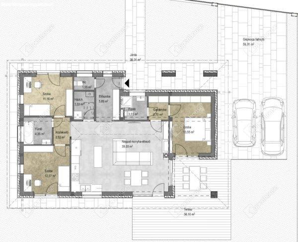 tételként, felár ellenében érhető el.Műszaki paraméterek:102m2-es családi ház +