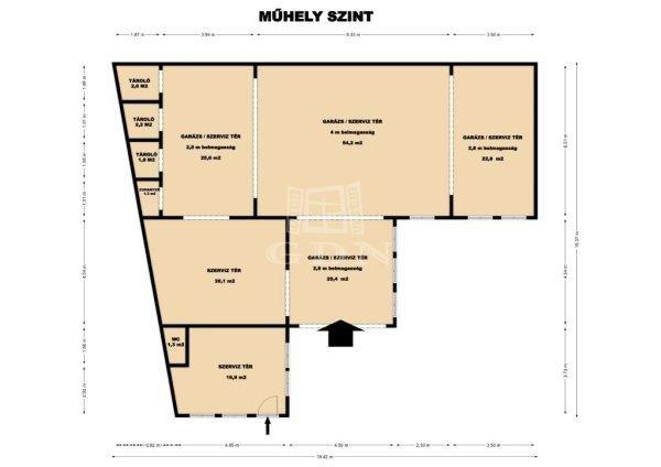 műhellyel, irodával.Az ingatlan minden telekhatára közterület által határos,