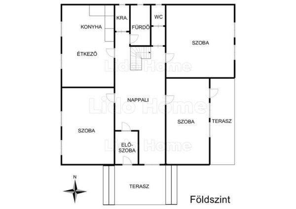földszinten nappali, előszoba, konyha étkezővel, 3 halószoba, fürdőszoba, külön