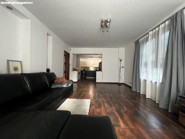 lakás nettó alapterülete 76.5 nm, amely egy több mint 43nm-es nappali, valamint