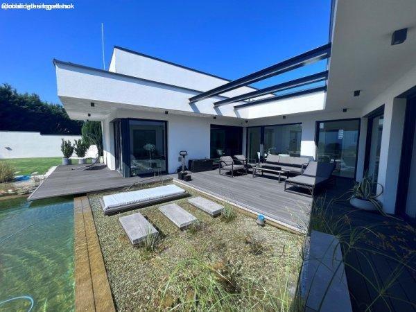rendelkező, egyszintes, minimalista jegyekkel épült, 220 nm- alapterületű,