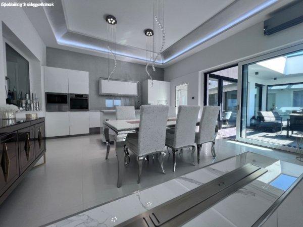 gépesített, prémium minőségű konyhabútorral. Az étkezőasztal mögött kapott