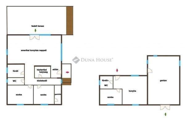 helyiség, közlekedő, előtér+ 31 nm fedett terasz- melléképületben 35 nm külön