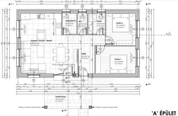 -2 hálószoba -16,32 m2 terasz csatlakozik a nappalihoz. -külső falak: 30-as