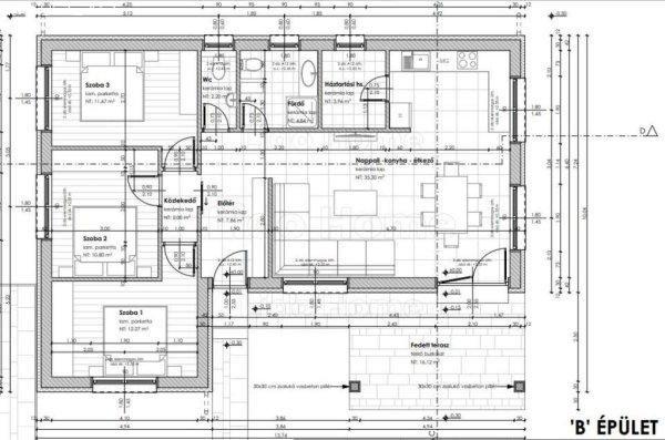 nappali + 3 szoba -Terasz: 16,12 m2 -Falazat: 30-as tégla -Hőszigetelés: 12 cm