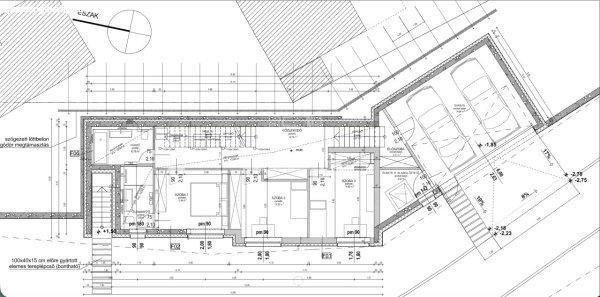 /Műszaki részlet/:- Két szintes kialakítás: alsó szinten dupla garázs (2 autó