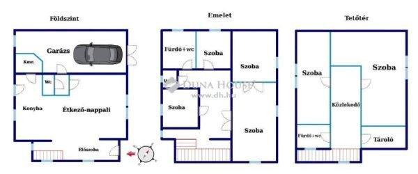 helyiség, 2 kivételes nagyságú szoba és egy zuhanyzós fürdőszoba! Az alsó szint