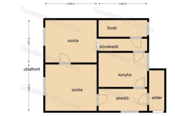 kialakításra: előtér, ebédlő, konyha, nappali, szoba, közlekedő és fürdőszoba