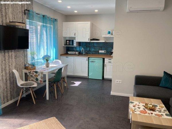 konyhás nappalival és fürdőszobával, saját terasszal.Kívülről pedig