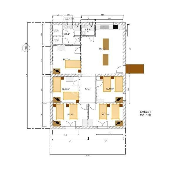ággyalEmelet: 130 m2 nagyságú- felszerelt konyha- két fürdőszoba- öt hálószoba,